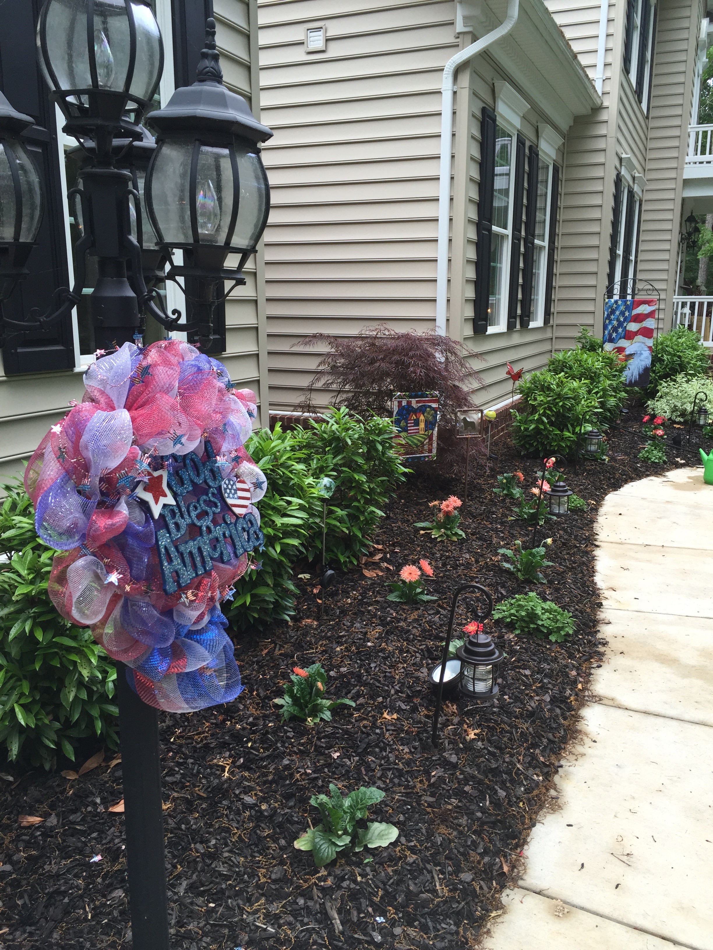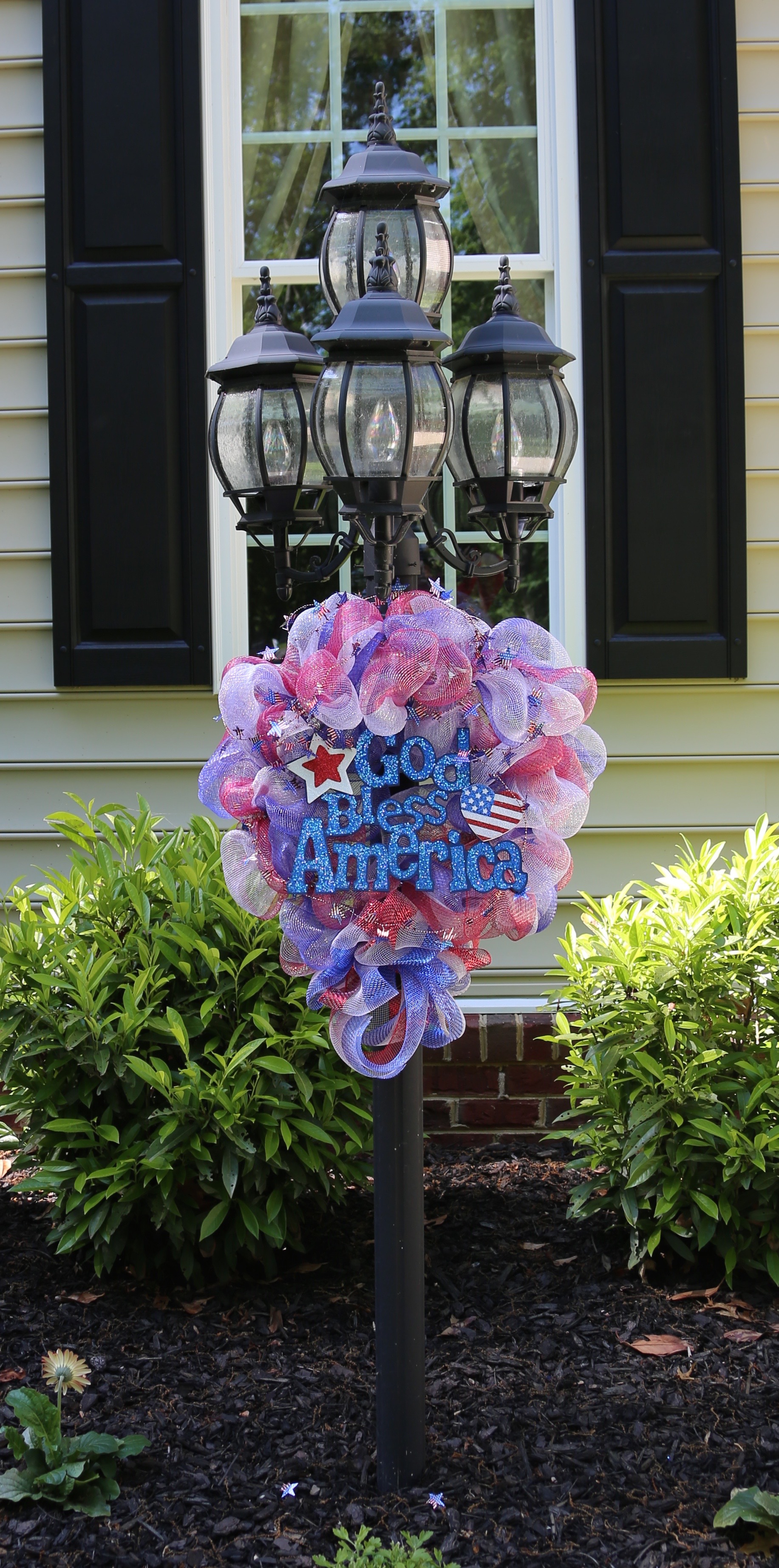 I am thrilled that I trusted myself enough to go ahead and step out of my box and attempt to utilize deco mesh for my wreaths. I am especially happy with how they look on that light post and I know that I will be making more and more of these wreaths as we go forward in time. They are so easy to make and they make a big, bold statement. I love them!