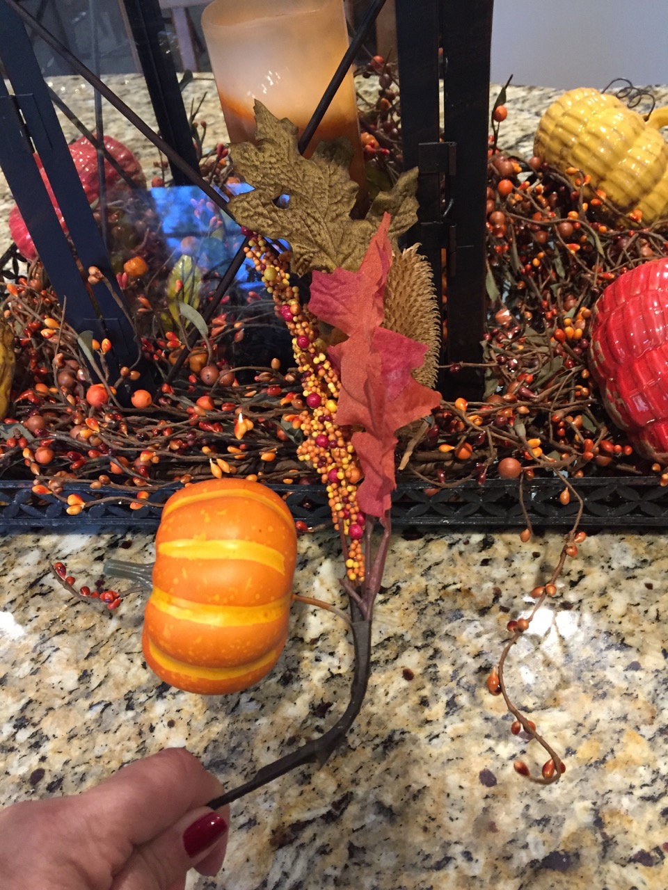 That centerpiece stayed in place until it was time to decorate for Fall. Now, I will walk you through how I created that Fall centerpiece…Here goes: