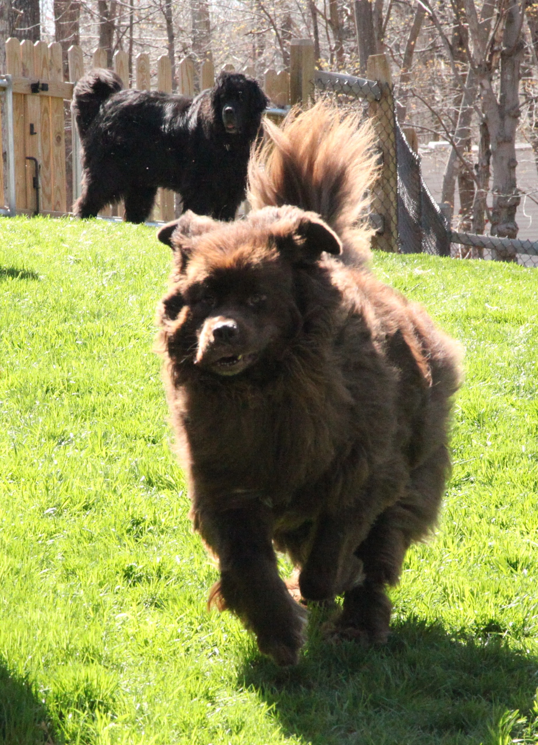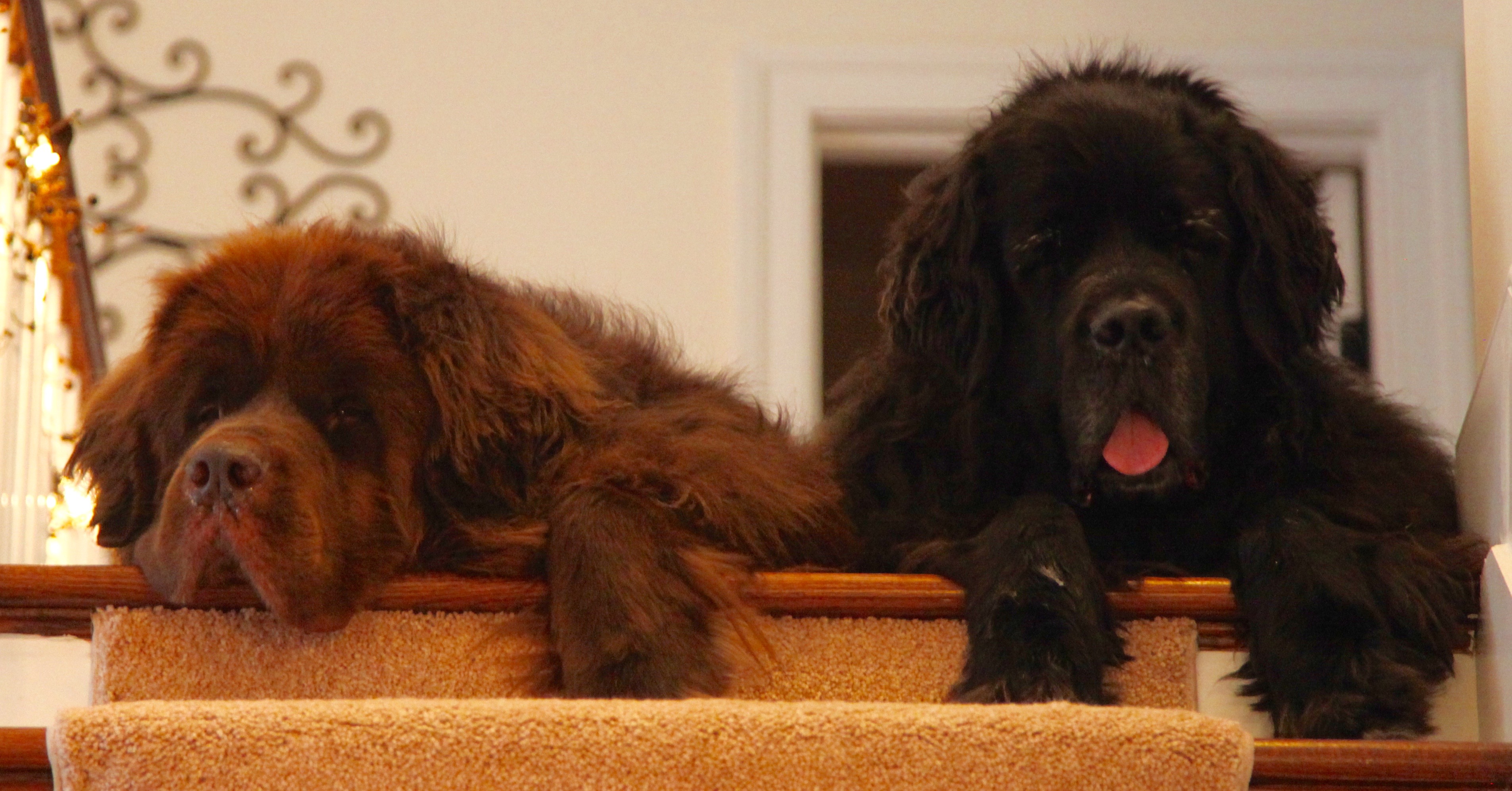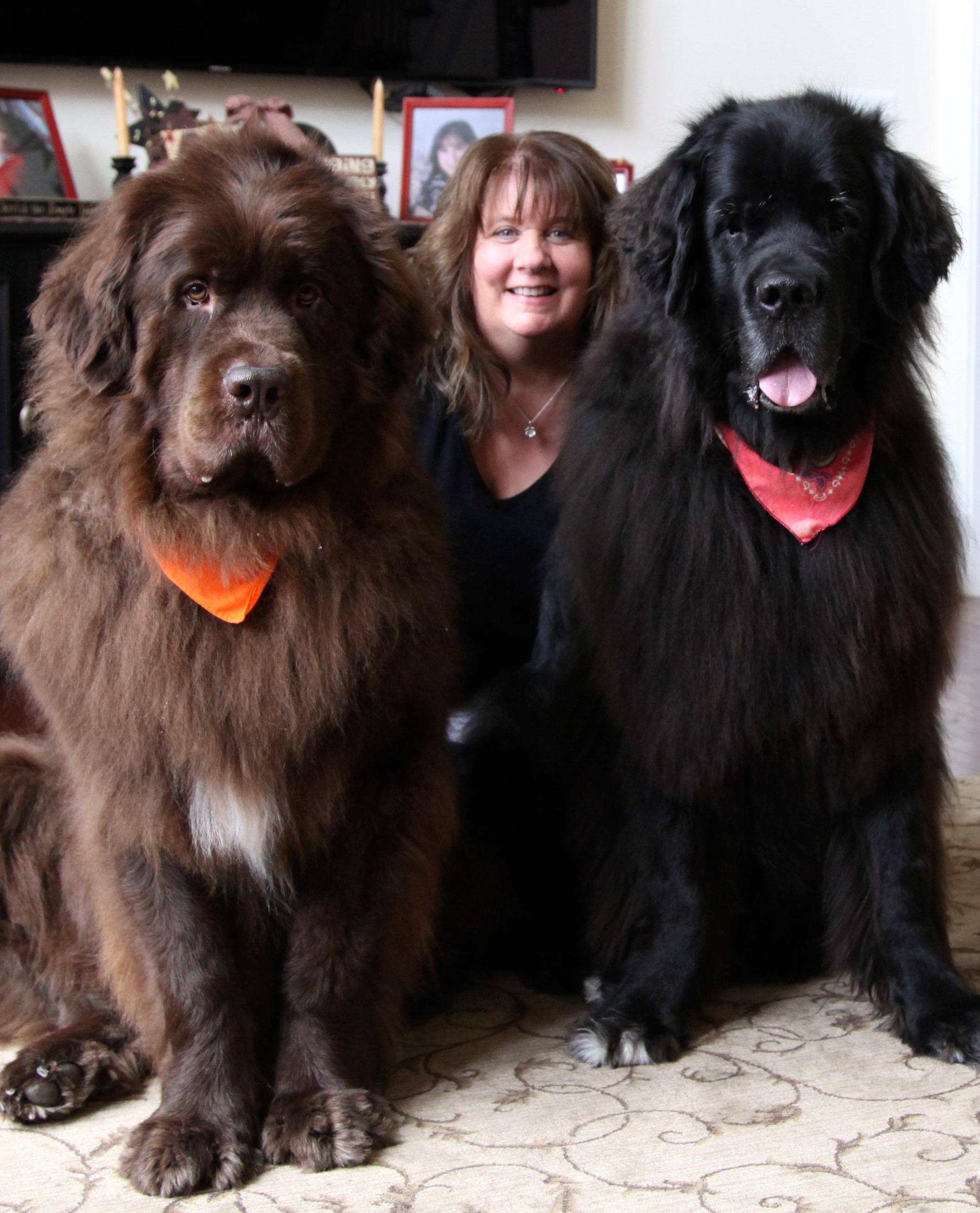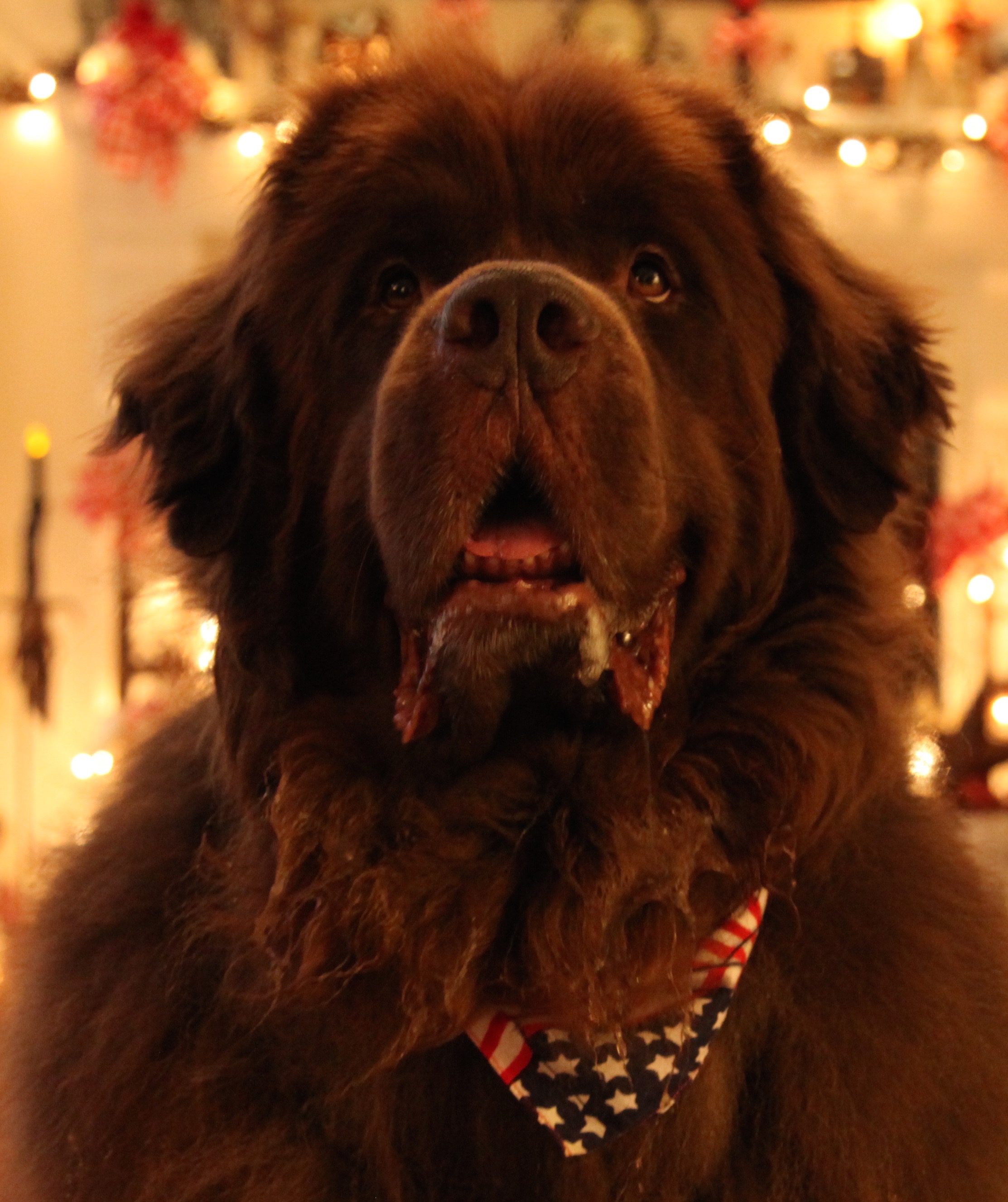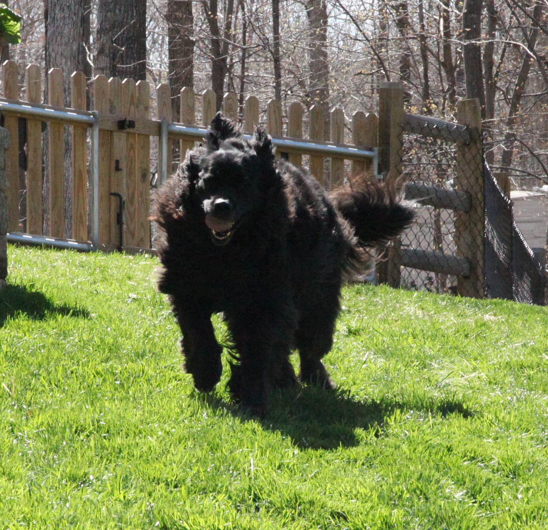 IMG_6830This is Sophie, she is a Newfoundland, and will soon be 9 years old.  Her big personality matches her physical bigness, she weighs 161 lbs. and is 32″ at the withers (yes, she is bigger than the “Standard” Newf…more to love in my humble opinion). 🙂  This girl was quite an ornery puppy, in fact, there was the one time that while trying to retrieve a ball from under a couch, she literally pulled said couch away from the wall and into another room in order to capture the ball again <~~~ That is a true story! lol She has calmed down in her older age, although, she is still as agile as can be, she runs like the wind, and is as animated as the day is long. When we were building this house, we’d let her ride along with us over here every day so she got accustomed to her ride (you know we went *just* for her…<~~ in her mind anyway), so now-a-days at 2pm every single day, without fail, I take her for a little ride around our neighborhood—no, I do *not* spoil my dogs… <~~~ I just told a big fib! lol 😉 But, Sophie gets so much joy out of that little ride each day, I just can’t deny her. 🙂  This girl doesn’t have any health issues!  Her white muzzle and eye lashes and brows are the only way that one can tell she is getting up in age.  She is as strong as an ox and I feel as if she will be with us for many years to come. ❤