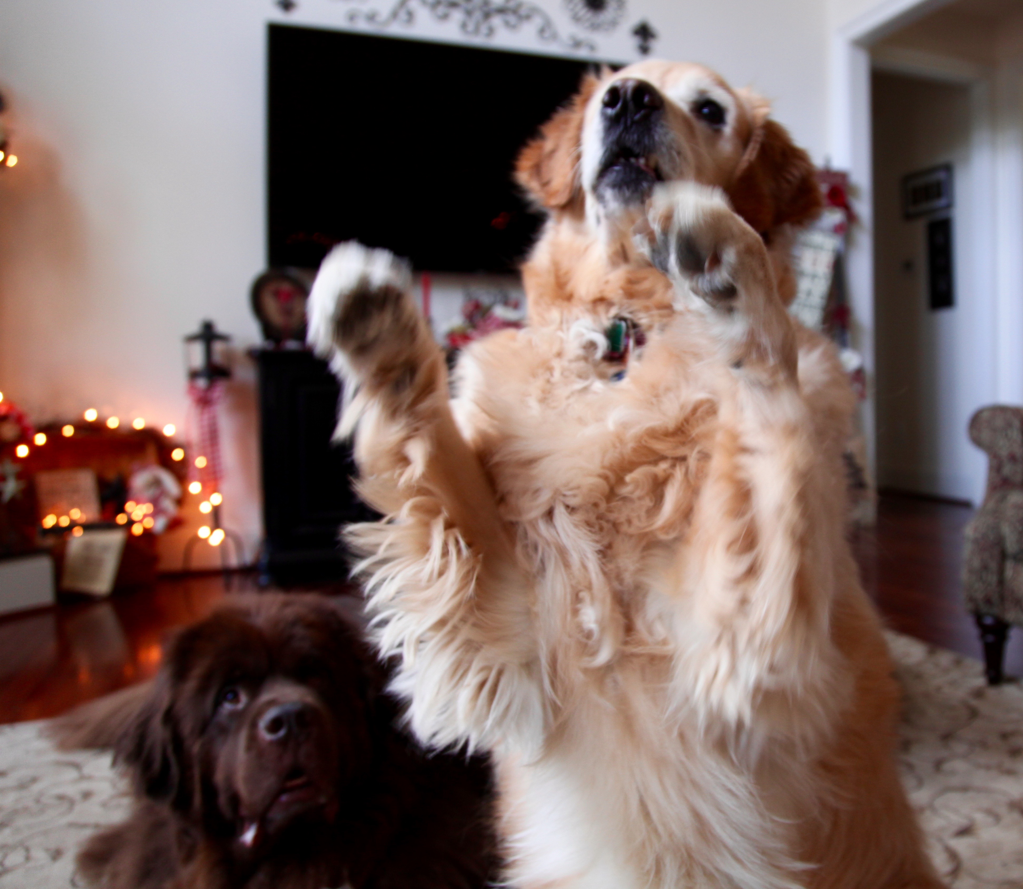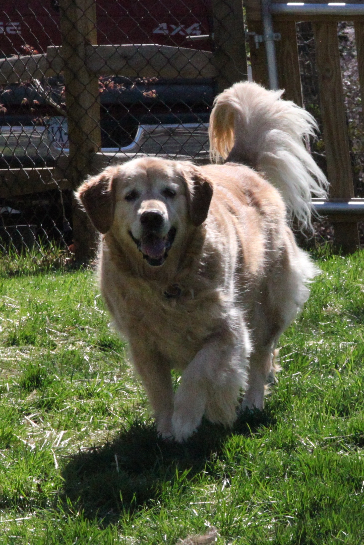 IMG_1896This is Gracie, she is a Golden Retriever and she is 9 years old.   She is a special girlie who can do every trick in the book and then some.  She is as smart as a whip, no kidding, this girl can learn a new trick in minutes. She can “close” doors–doesn’t matter what kind of door, cabinets are her favorite thing to close, she can sit pretty, give a high-5, and a high-10, speak, spin, roll over, fetch, stay (for hours), come when called (thank goodness); I’m sure I’m forgetting some of her tricks, but, the girl is amazing!  The Newfs adore her and they all play and live together beautifully.  Gracie loves her toys and still tries to play tug-o-war with Samson. She has started to have a few health problems, but we watch her closely and care for her lovingly when she isn’t feeling her best.  She is an wonderful little lady…Miss Gracie Mae….yes, indeed, just wonderful! ❤