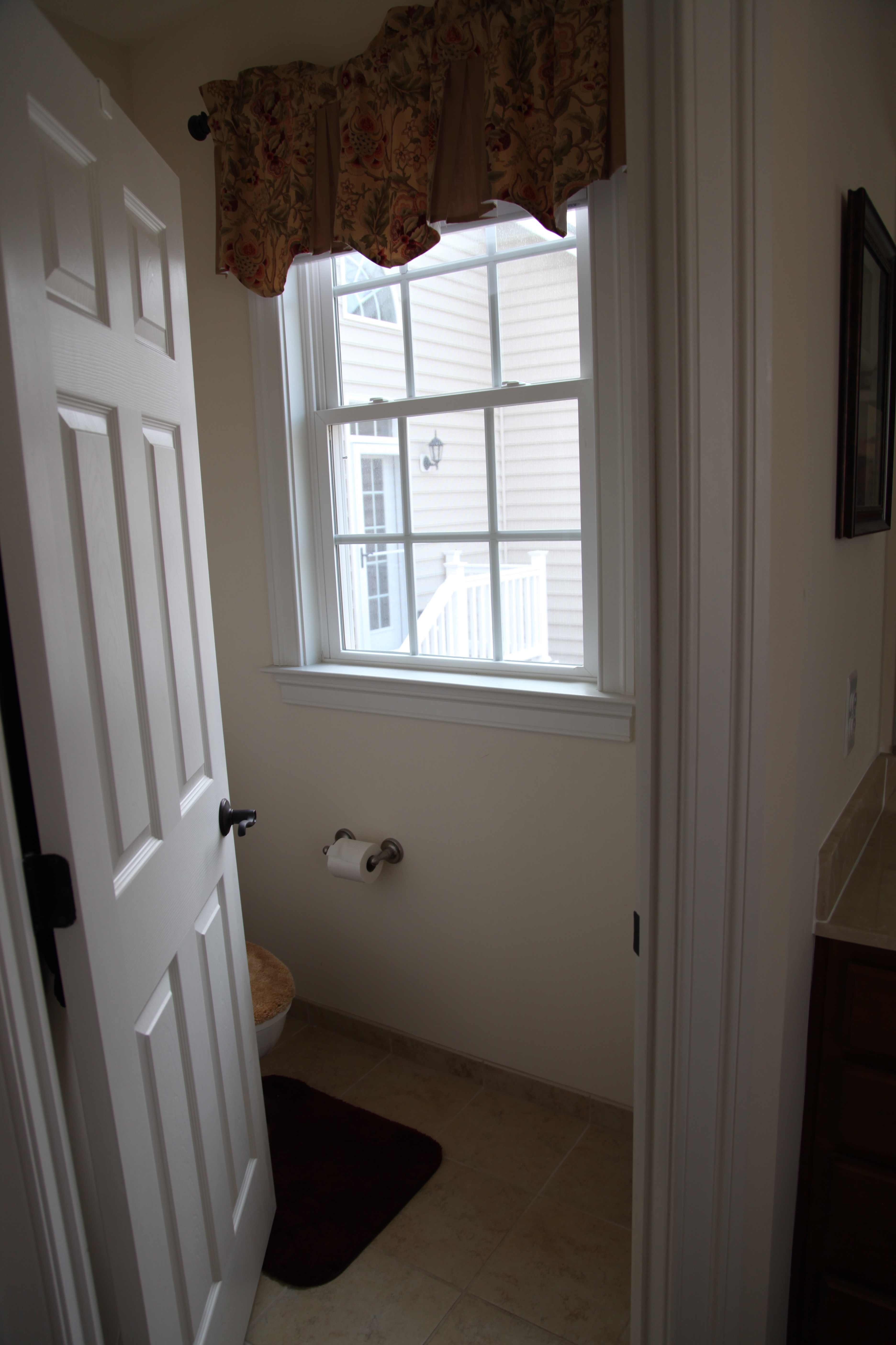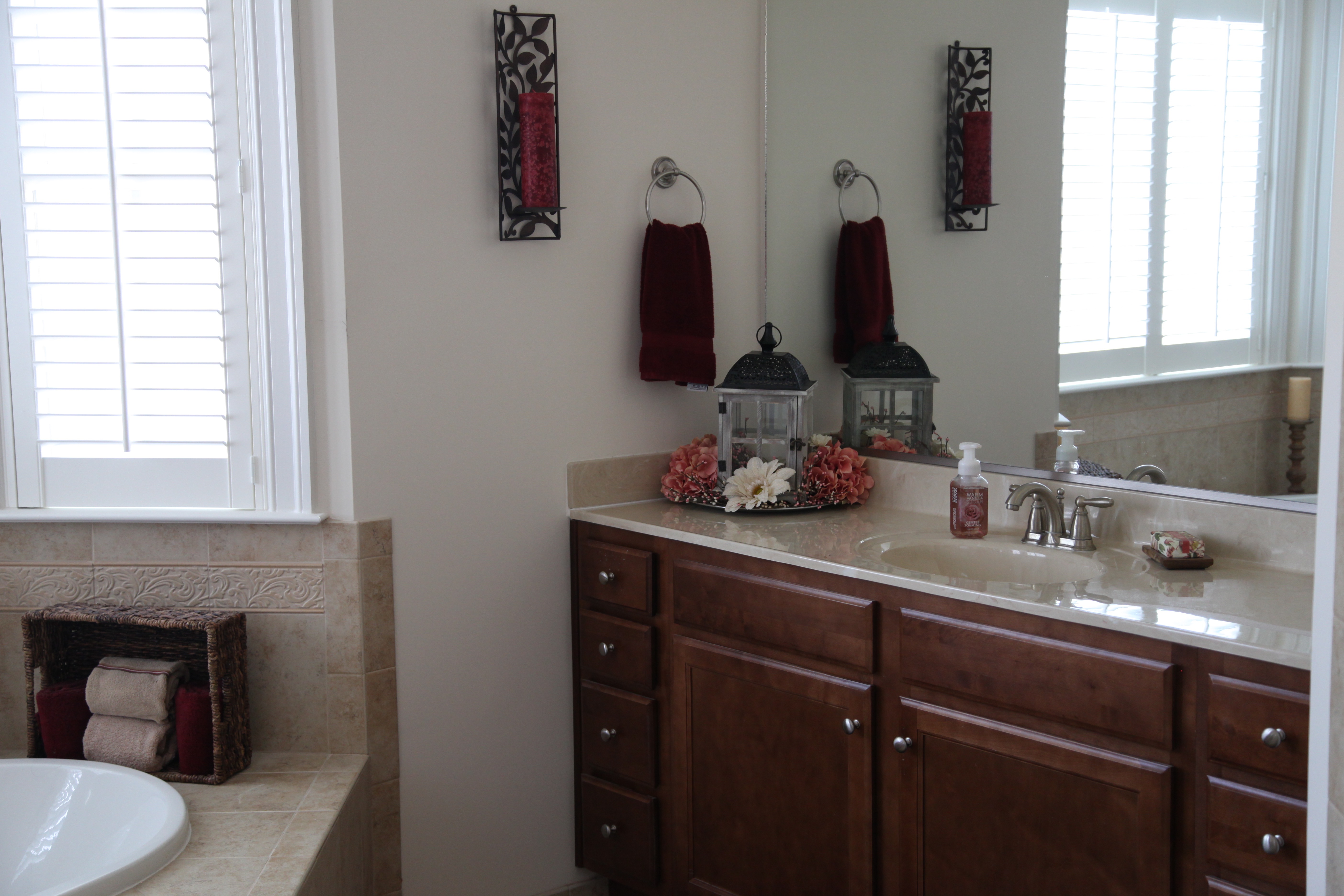 The master bathroom is quite large as well, and I must admit that I do love it.  We had a master bathroom in our other house, but it was tiny (not complaining, at least we had one). We have a separate soaker tub in there, I’ve never had one of those in my life. 🙂 Also, we did special order those plantation shudders for on the bay window; I will admit, they are wonderful and I’m so very glad that we bit the bullet (they were pricey) and purchased them.