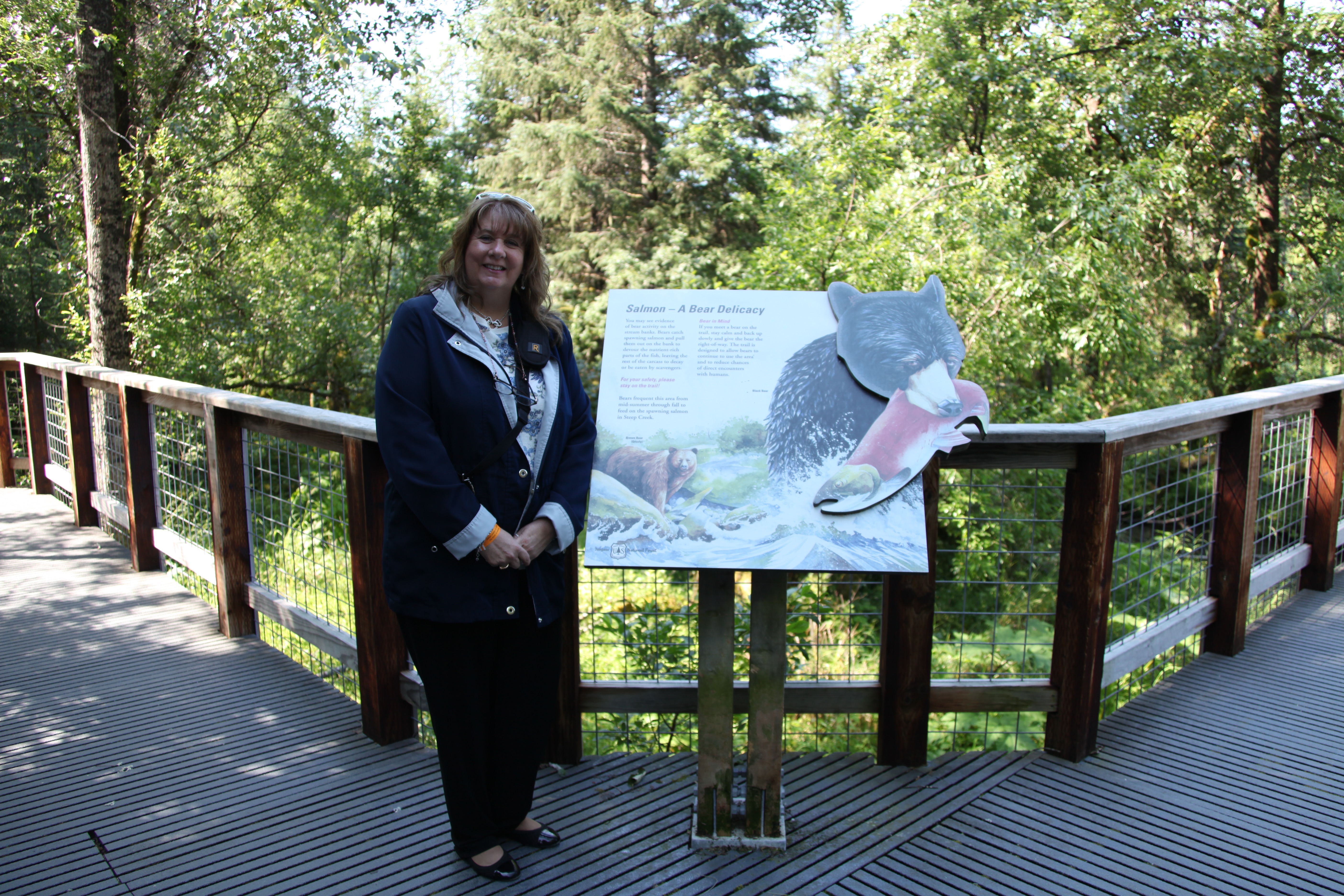 Yes, I love to see glaciers and on this excursion, our first stop was at the very pretty Mendenhall Glacier; there is also a lovely nature trail that you can follow that winds around a stream and shows you some of prettiest foliage in the State. My hubby and I always take a leisurely stroll on that trail first, there are signs along the way to tell you about the wildlife and salmon, etc…For this geeky girl, Heaven! 😉 🙂