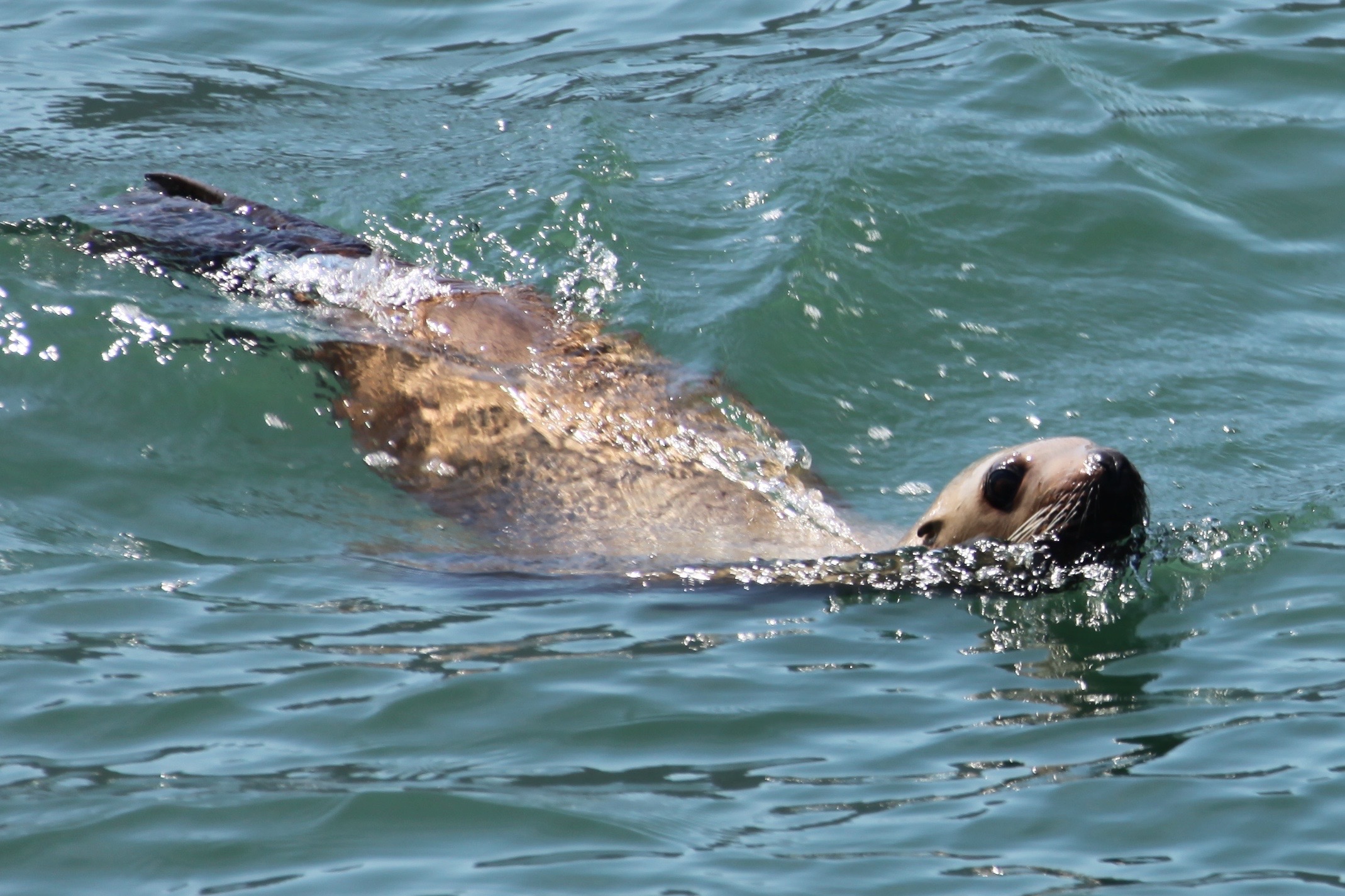 OH wait, we also saw some steller sea lions, one in particular came right up to our catamaran, curious little dude: