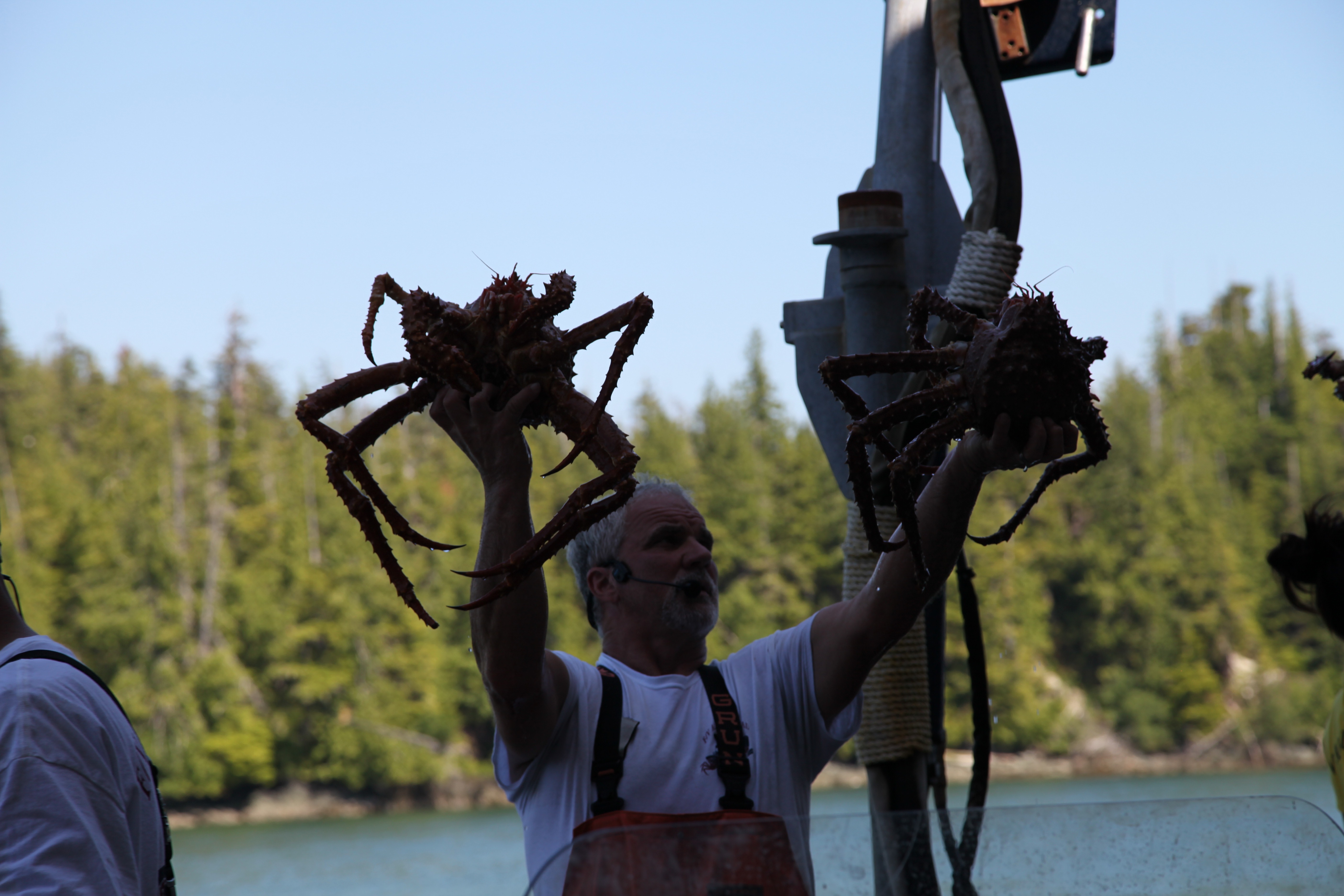 We then traveled around to some different crab and shrimp pots that the crew had dropped earlier and they explained the process of pulling/baiting/dropping said pot. We got to hold snow (or opilio) crabs, king crabs, shrimp, and other creatures from the sea. 🙂 I loved that part!