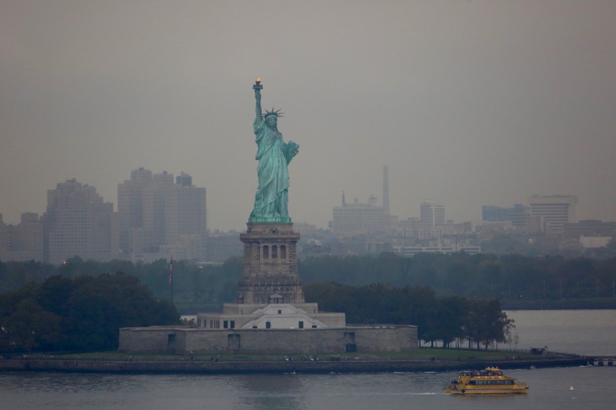 It was now time for Sail-Away–They moved the sail-away “party” into the Piazza because of the weather, but, Chris and I along with tons of other people stayed outside on deck as we sailed out of Brooklyn.  Yes, we were a bit damp as it was misting, but, that didn’t dampen my mood at all, I was one happy camper to be starting this new and fun adventure.  Here are a few pictures of our time on deck and then a video of our sail-away. 🙂