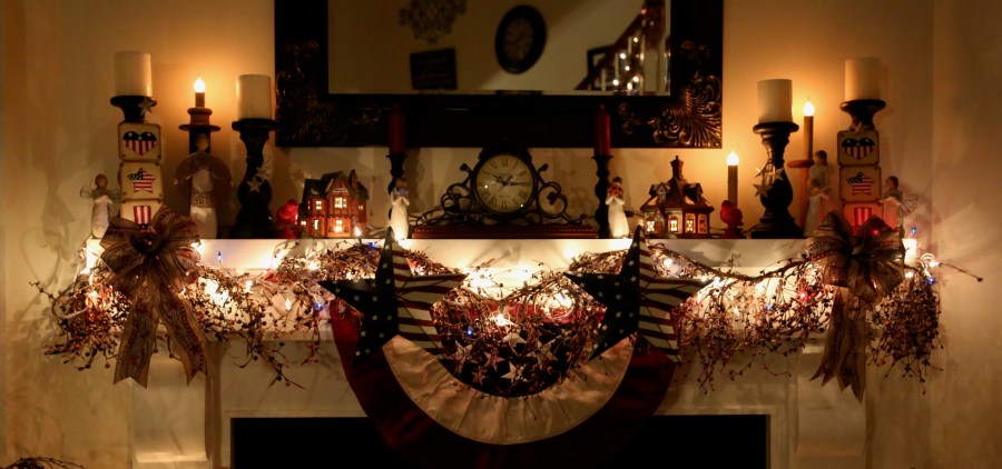 Hi everyone! Thank you all so very much for stopping in here to see what I’ve been up to as of late…a-n-d…I’ve, as you will see as we go through this little post, have been keeping myself very busy. As y’all know by now, decorating and redecorating for each Season/Holiday is a passion of mine. So as we were approaching Memorial Day at the end of May, I started to plan, create, and get myself all revved up to start my switch out to my Patriotic decor. I normally will switch everything over to the Patriotic by Memorial Day and that is how it will stay until after the 4th of July. So instead of talking y’alls ears off here, let me show and tell you (via my YouTube video tutorials and tours) how I achieved my goal of bringing in some of the Patriotic. By the way, I only redecorated the back side of the house, I left the living room, dining room, and foyer alone. Okay, so here we go. I started with our mailbox, here is how it looks after I took inspiration from that mailbox cover—trying to create the same feel in the back trough that is depicted on the cover: