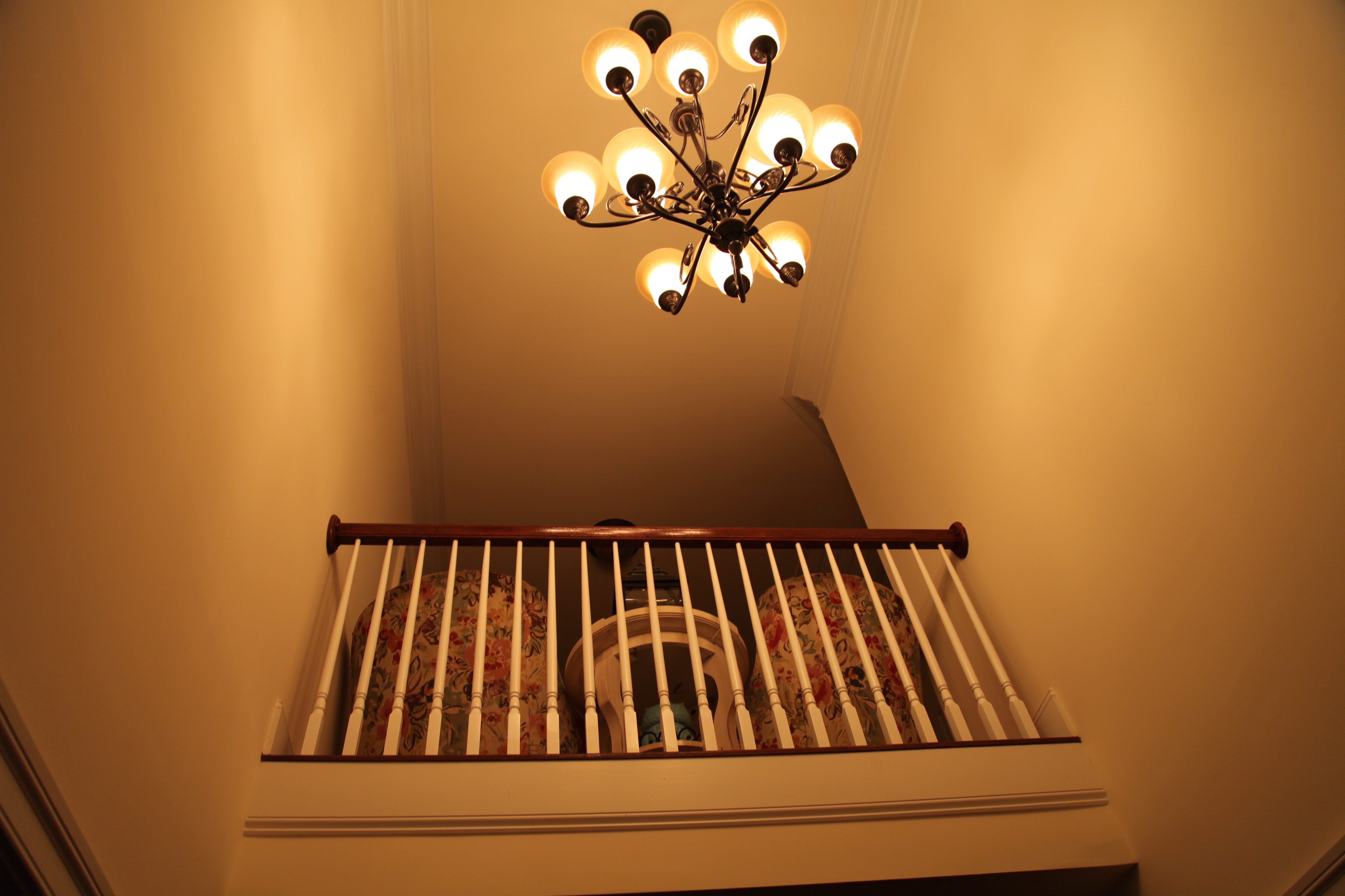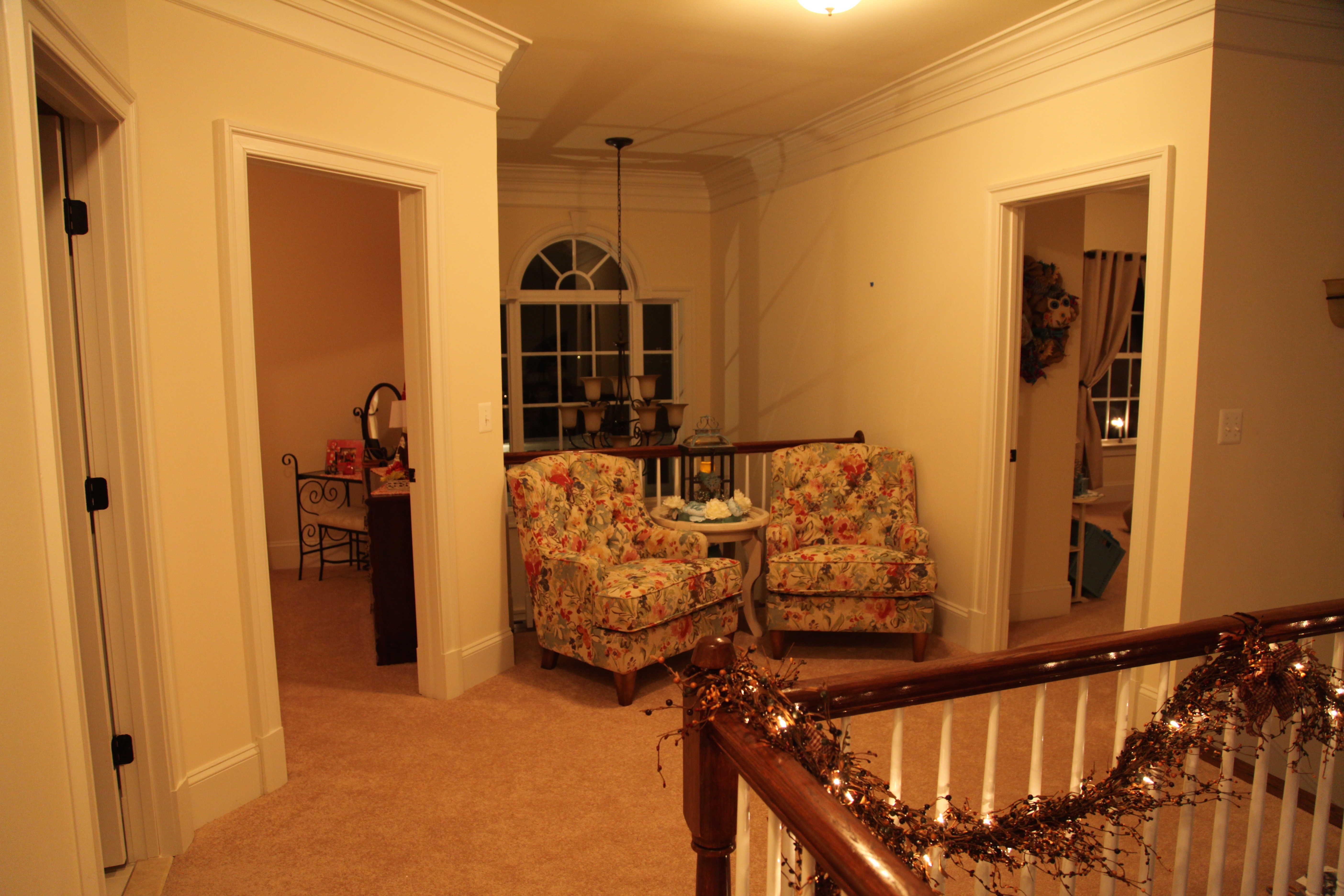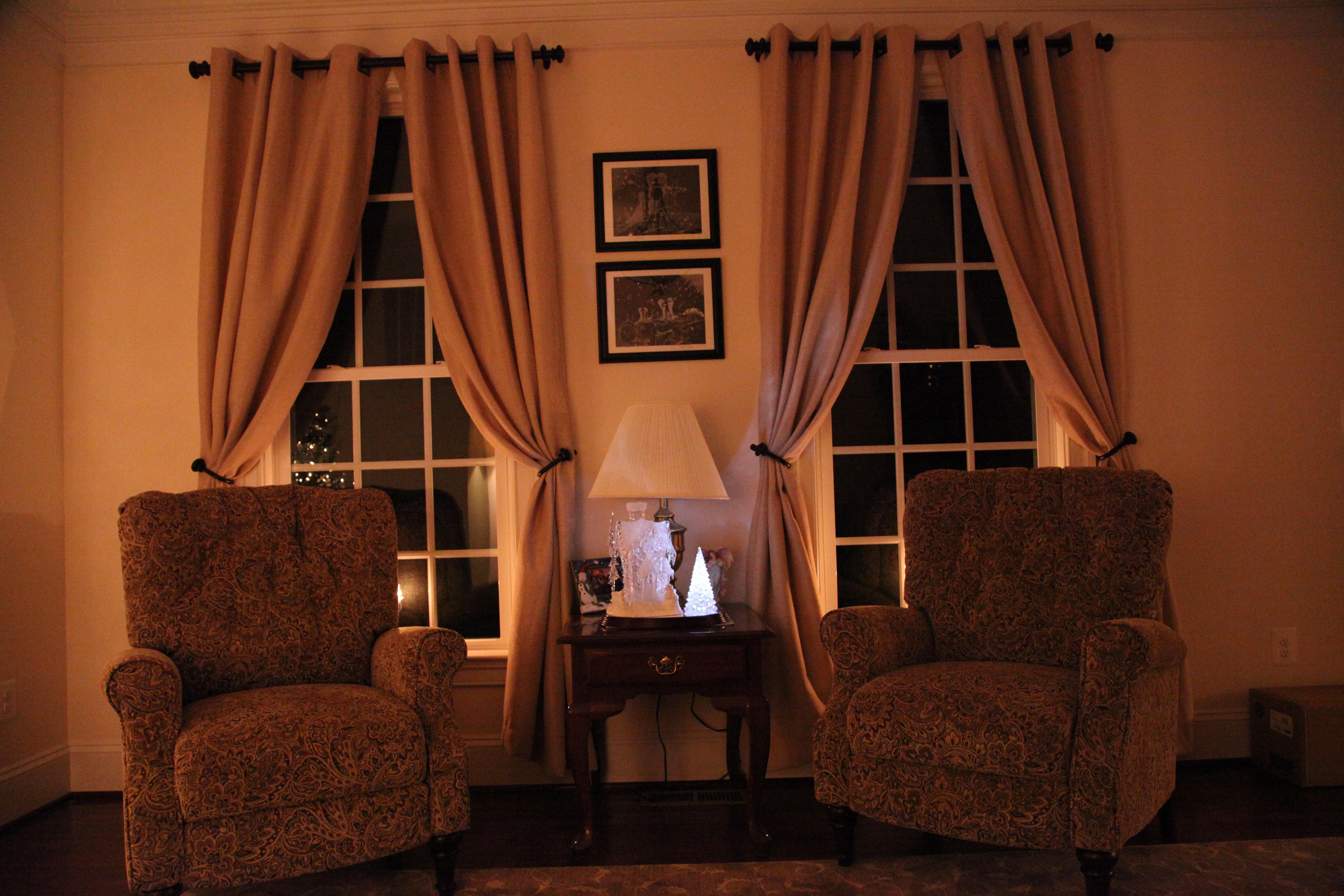 I did special order them and the round wooden table that is snugged between them at a local furniture store. My hubby thought I was crazy when I chose that whimsical pattern for the chairs, but I loved it and I wanted that space to be completely inviting and those chairs to in effect call you to them inviting you to sit and just relax. 😉