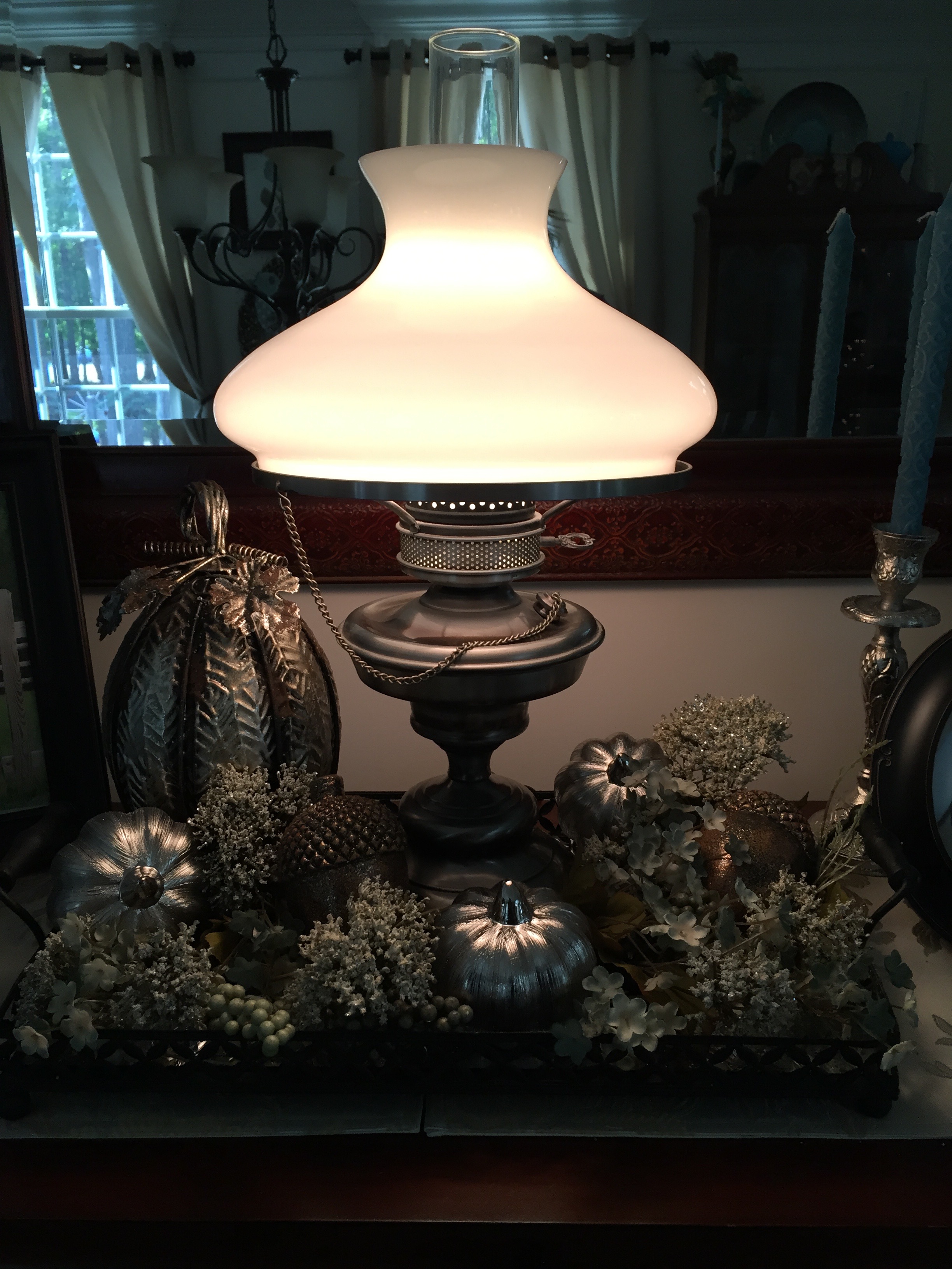 My hubby painted parts of the ceiling fan in a turquoise color…spiffy! 🙂