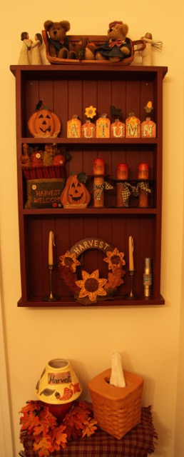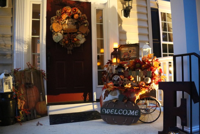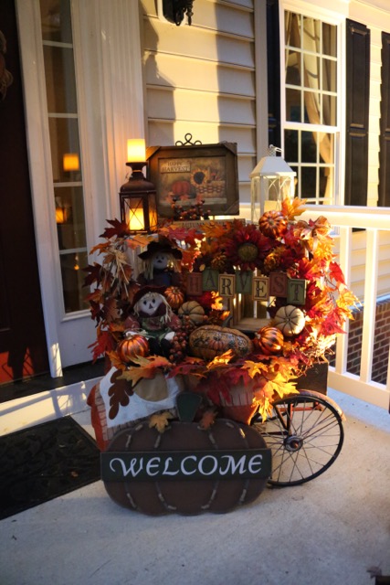 Well, that does it for this year’s Fall decorating. I am very pleased with how it all turned out; it did take me almost a month to get it all changed over, but I had to recreate the wheel so to speak in a few places. Also, I decorated the inside and then waited a couple of weeks until we were into the month of September to decorate the outside. I had a great time turning on my creative juices and letting my imagination run a little wild. I hope that any guest who might come to visit feels at home and comfy cozy when they enter; that is always my goal, to have a warm, welcoming, home, one that doesn’t make people feel like they can’t relax. 🙂