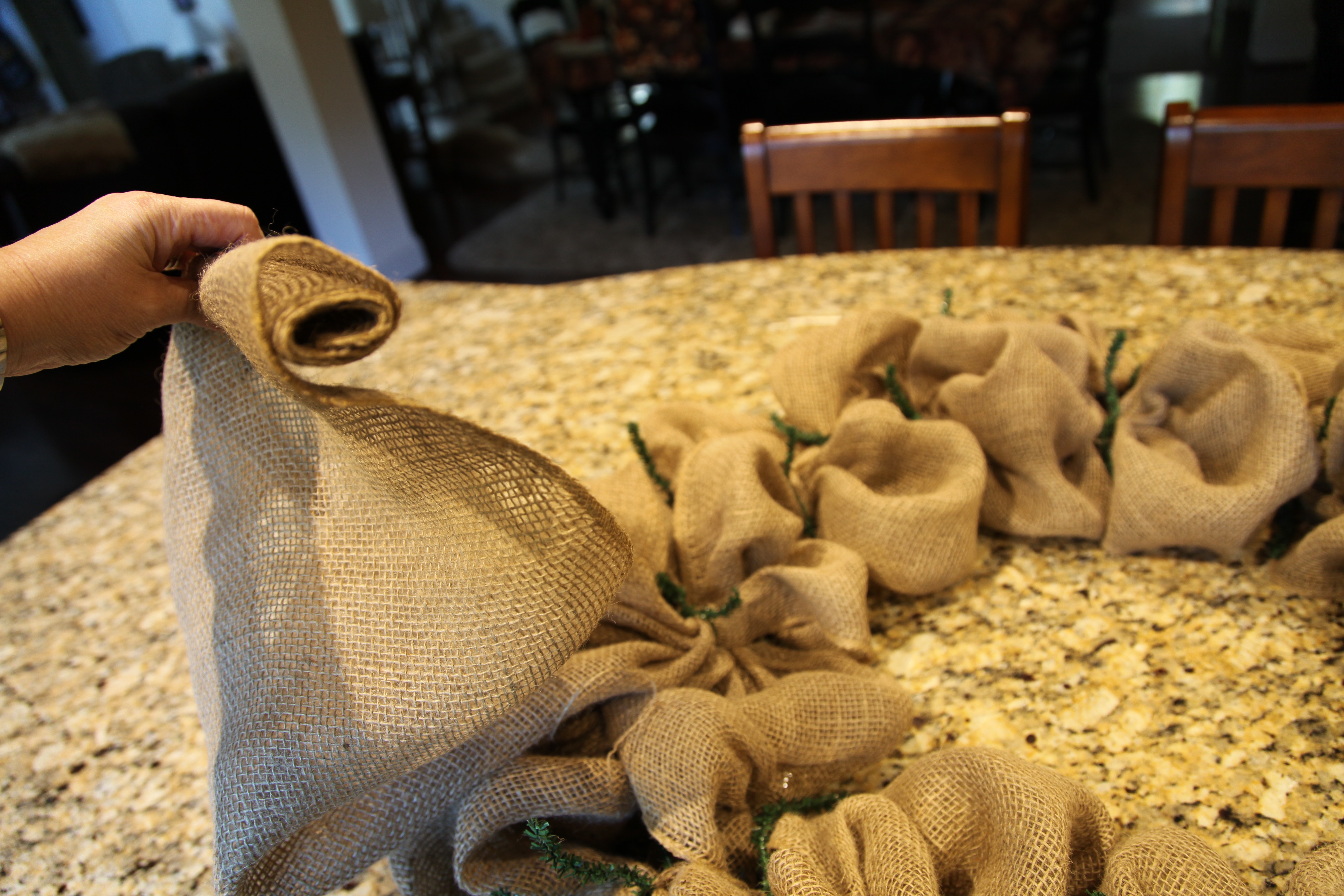 I made the wreath that is hanging on the mirror above the mantel…If you’d like to try one for yourself, here is a link as to how I created it…