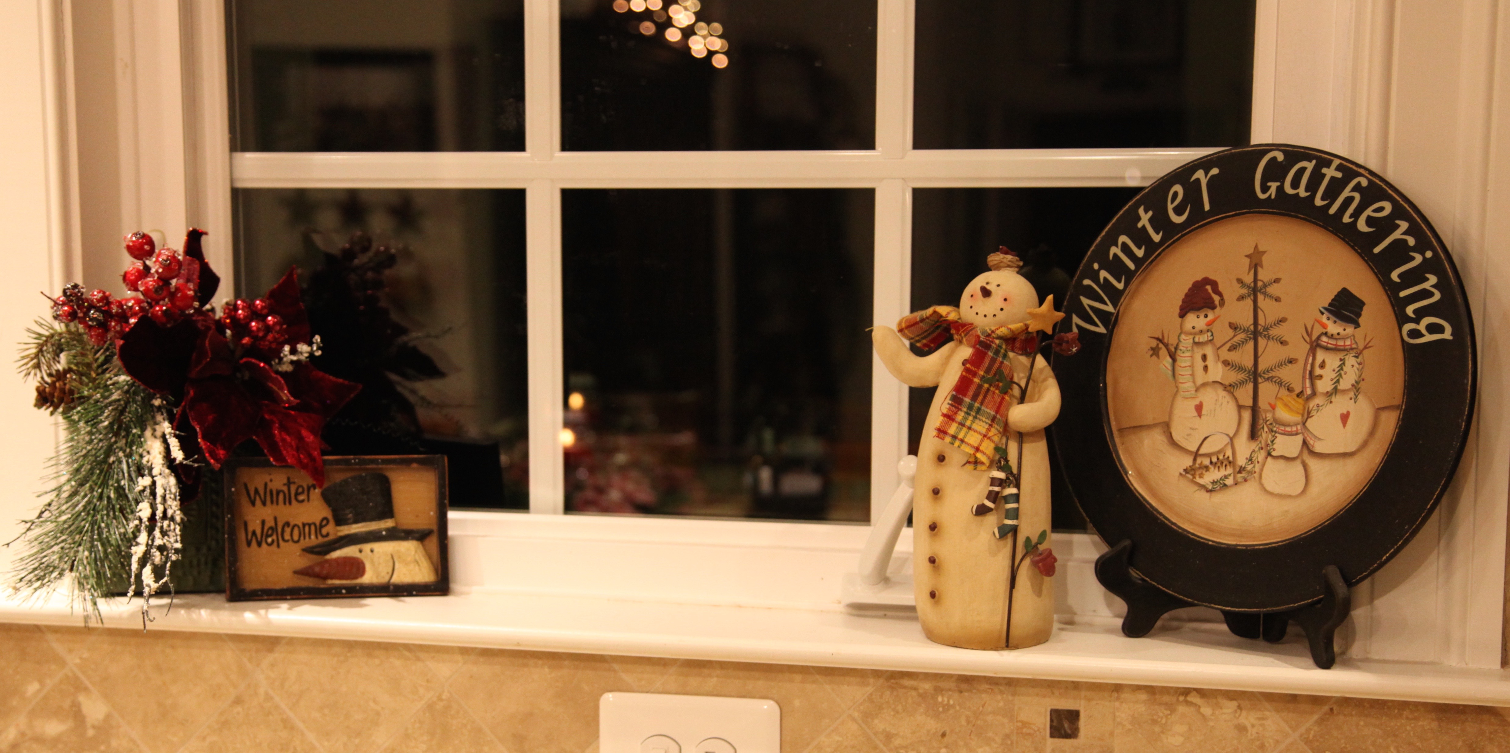 I love to work with those kitchen windows; I’ve incorporated wooden plates, gerber daisies (wooden and silk), pip berry picks…Here is my The Ever Changing Kitchen Window Decor post: