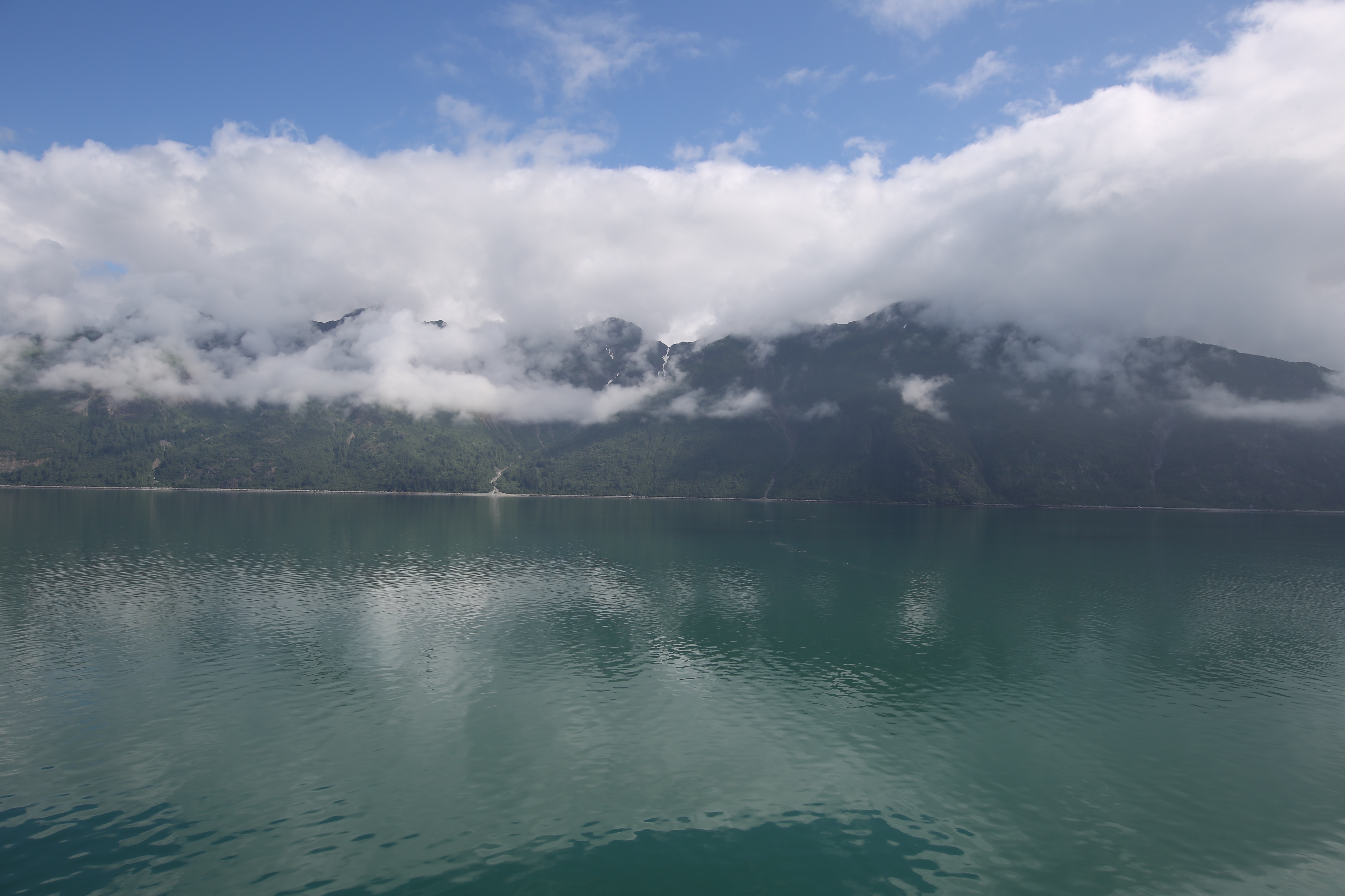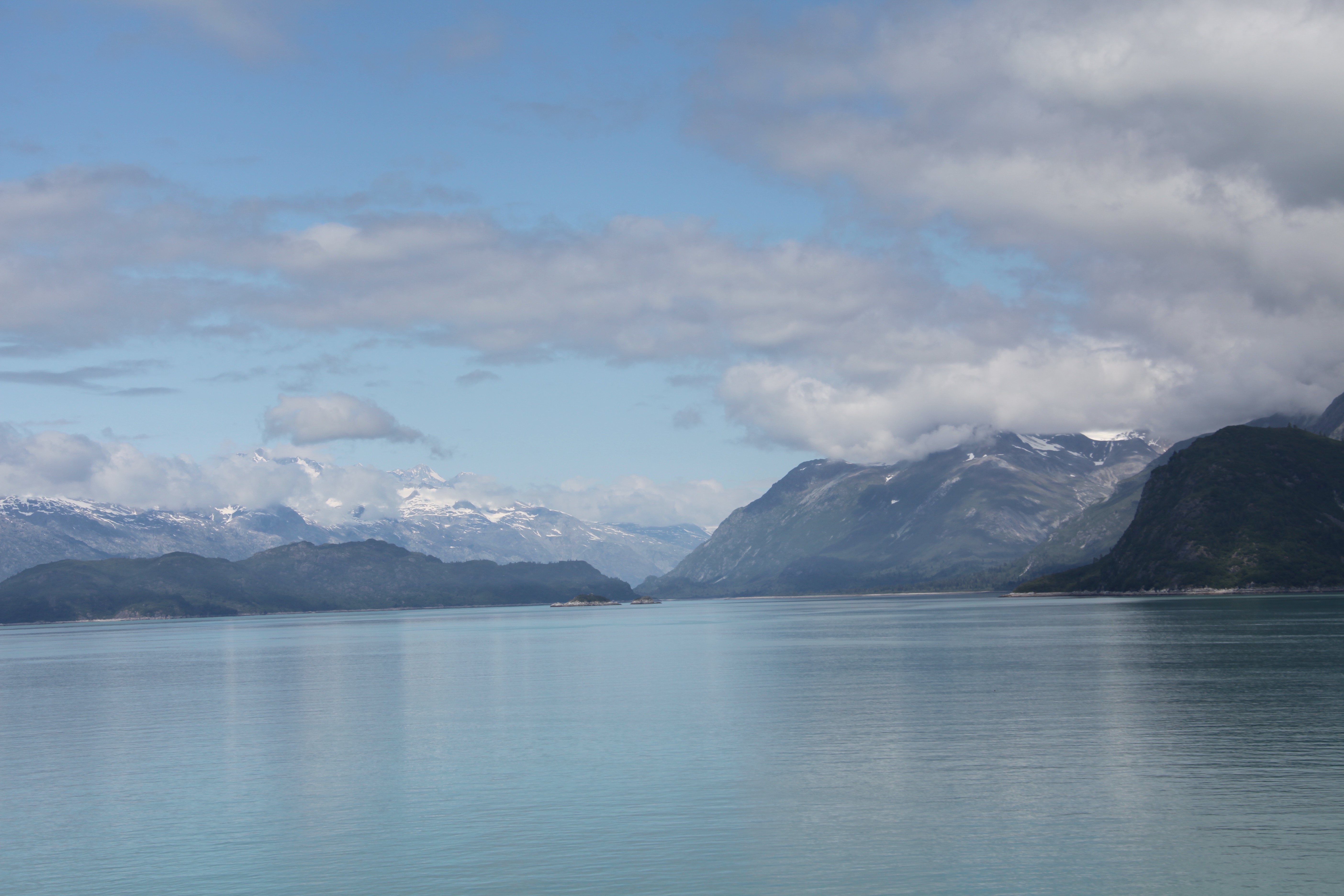 I don’t even remember eating breakfast or lunch or dinner for that matter on this day…hahaha…I do believe that Chris brought us back pastries from the International Cafe that morning though. We were sailing into Glacier Bay pretty early on this day, so we were busily about setting up our camera on our balcony and making sure our camera batteries were charged. 🙂 It was a bit cloudy that morning, but it didn’t take long for the blue skies to show up, it was going to be a gorgeous day!