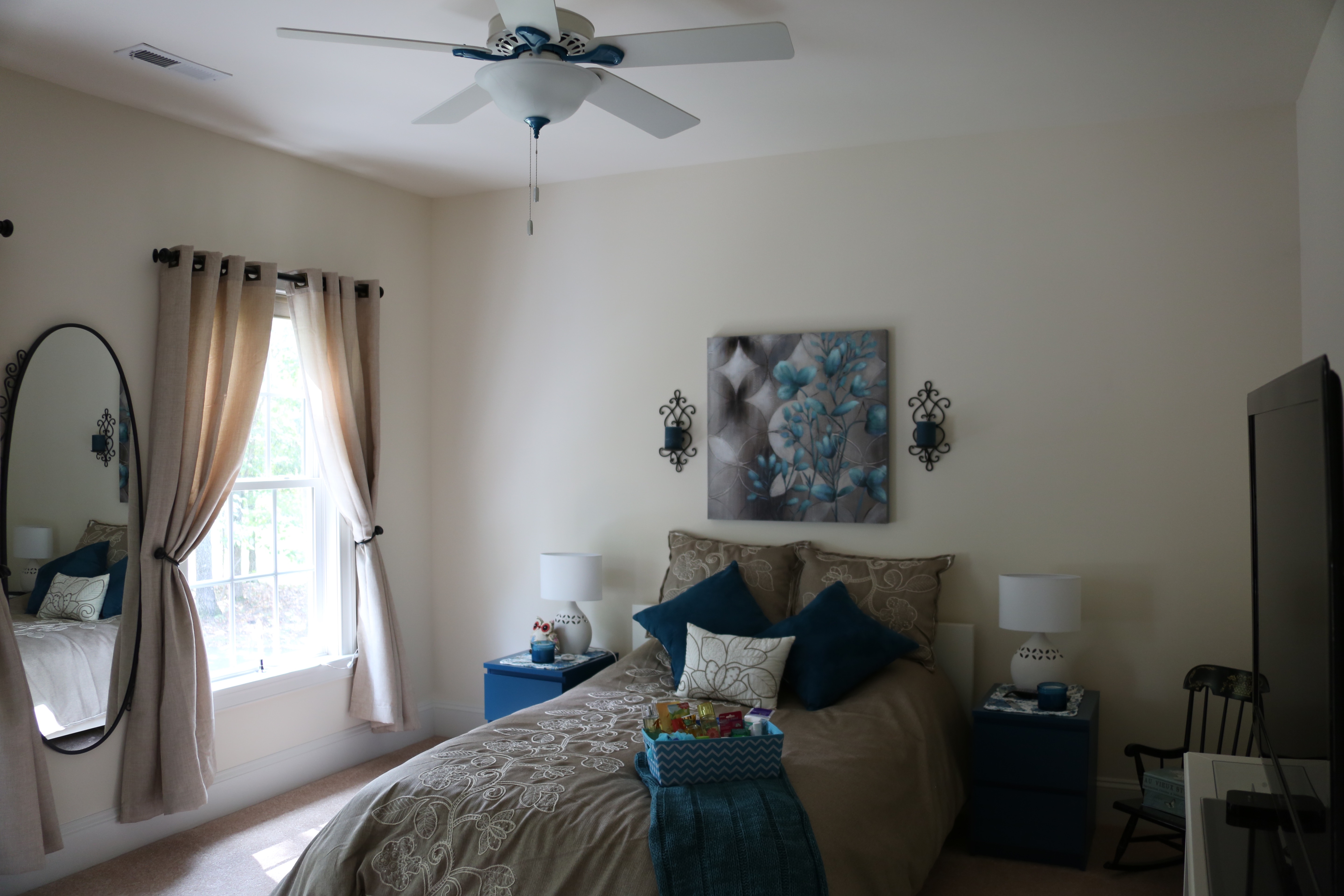We decided to go with a black ceiling fan in this room with silver accents…classic…