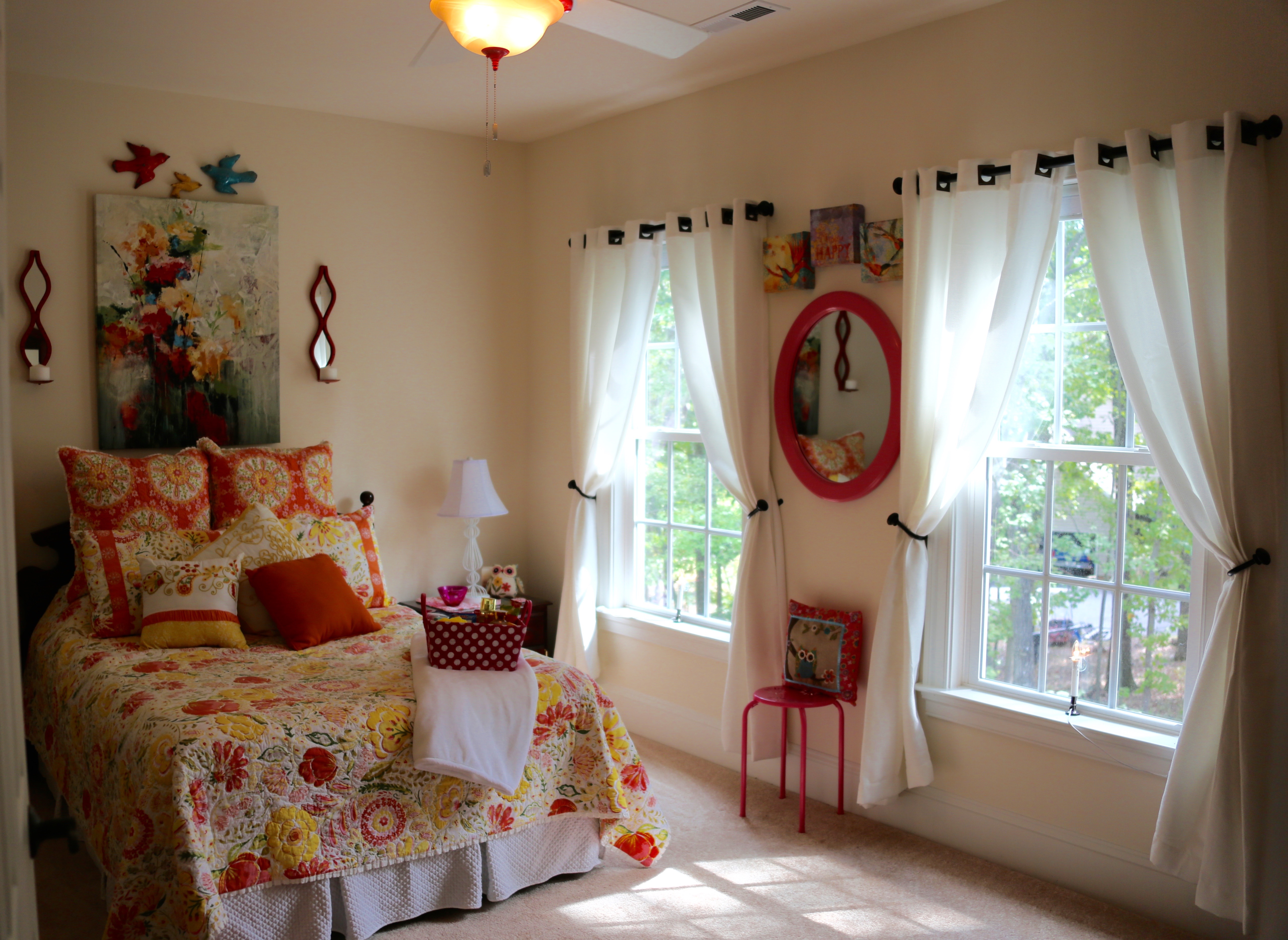 All three bedrooms are pretty large upstairs, and one of my goals was to make them feel cozy and comfortable without cluttering the room up with extra furniture and such; it is a task that I believe I have completed in all three spaces. 🙂 I’d love to stay in any one of these rooms if I were a guest here. 😉